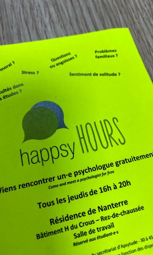 Merci fort à toutes les personnes que j’ai rencontrées et qui m’ont rencontré, aux étudiantes et étudiants aussi. À l’équipe CROUS Nanterre, je ne vous oublie pas.