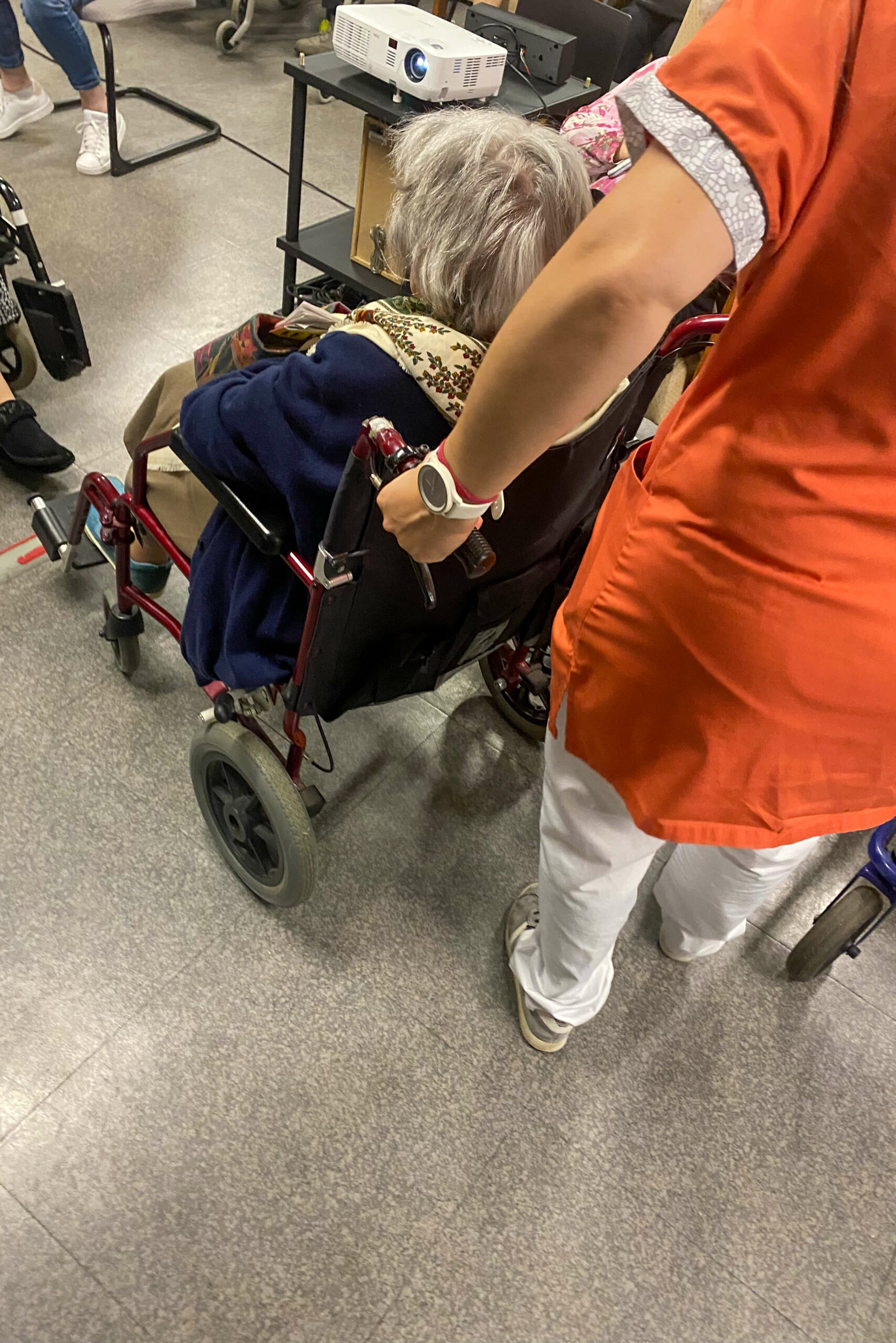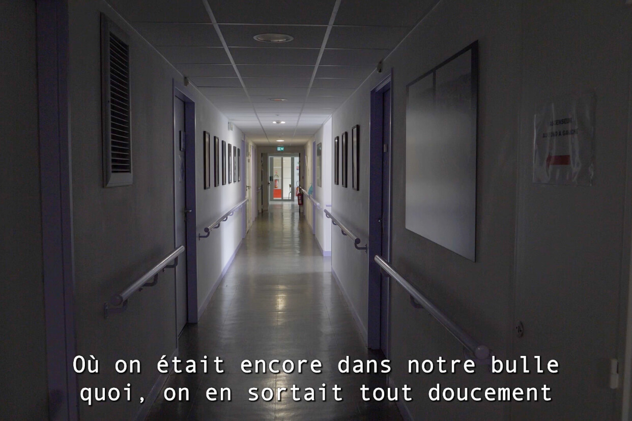 « Je sais à quel point ton travail raisonne pendant des jours et des mois auprès des personnes et leur entourage. Quel beau travail de l’avoir mis en lumière de cette façon.C’est beau de montrer la vie dans les EHPAD. La couleur, la réalisation, ces plans longs, d’objets, couloir… Tout m’a percutée. Quel plaisir de découvrir un travail fini sans connaitre tout le process. »
