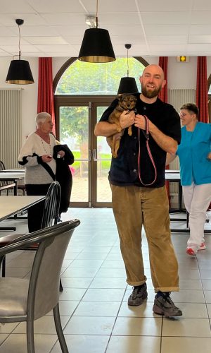 Je suis intervenu plusieurs fois dans cet endroit que j’aime tant : la résidence La Louvière à Aurillac. Un EHPAD. Assez rapidement, une certaine complicité s’est installée avec les résidentes et résidents et les deux animatrices Emilie et Sophie, mes idoles.