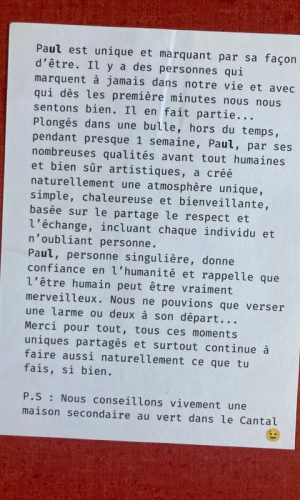 « Merci beaucoup pour l’invitation hier pour le film ! C’était magnifique et ça m’a fait beaucoup de bien <3 Vous êtes des gens qui font du bien. Quand on peut se sentir épuisé, vous construisez le pont qui fait parler deux mondes. »